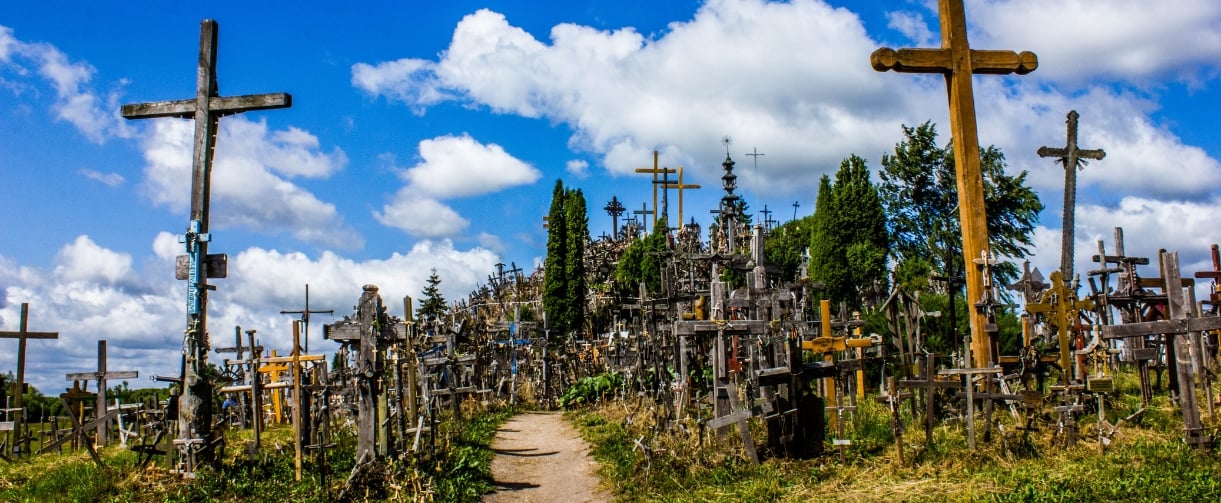 Hora křížů je jedinečné poutní místo nedaleko města Šiauliai. Na malém pahorku stojí víc než 100 tisíc křížů různých velikostí – od malých dřevěných až po ozdobená kovová či vyřezávaná umělecká díla. Místo má silnou symboliku a stalo se tichým protestem Litevců proti sovětské okupaci. Přestože byla několikrát zničena, lidé sem stále nosili nové kříže. Dnes je to místo modlitby, klidu i fascinace – každý kříž nese svůj vlastní příběh.